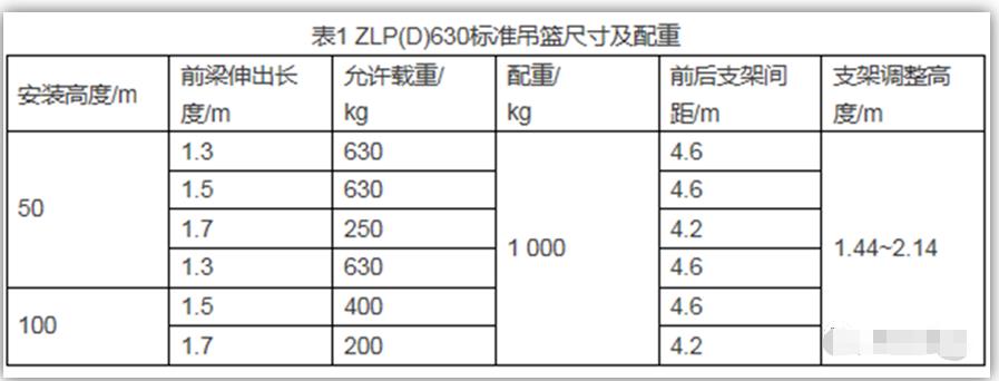 5、高處作業(yè)ZLP630吊籃尺寸及配重 目前市場上通常采用的吊籃有ZLP(D)630, ZLP(D)800, ZLP(D)1000型號。表1為ZLP(D)630標(biāo)準(zhǔn)吊籃尺寸及配重情況。