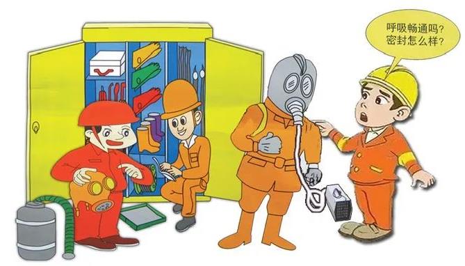 8.在缺氧或有毒有害氣體的有限空間作業(yè)時(shí),應(yīng)配備并使用空氣呼吸器或軟管 面具等隔離式呼吸保護(hù)器具。嚴(yán)禁使用過(guò)濾式面具,必要時(shí)作業(yè)人員應(yīng)拴帶救生繩。